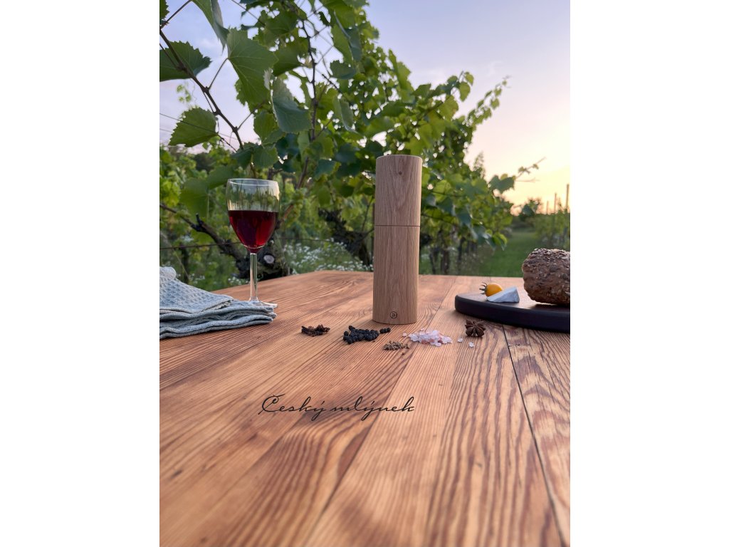Čistý tvar válce mlýnku o výšce 20 cm nechá vyniknout nádherné kresbě dřeva. Díky této přirozené kresbě dřeva je každý mlýnek originálem.