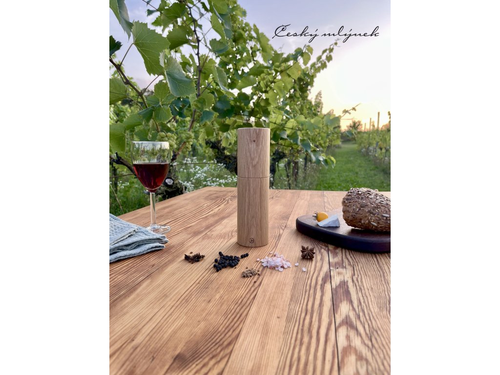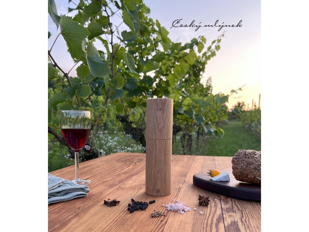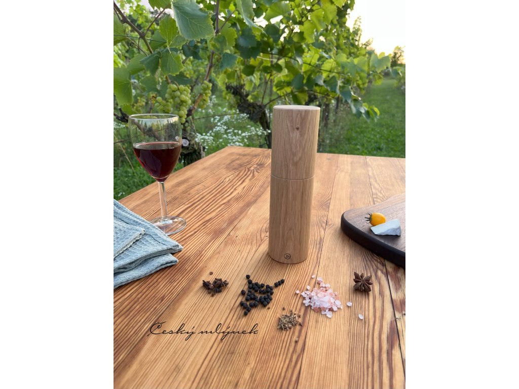 Dřevěný mlýnek na sůl, pepř a jiná koření 20 cm dubový válec