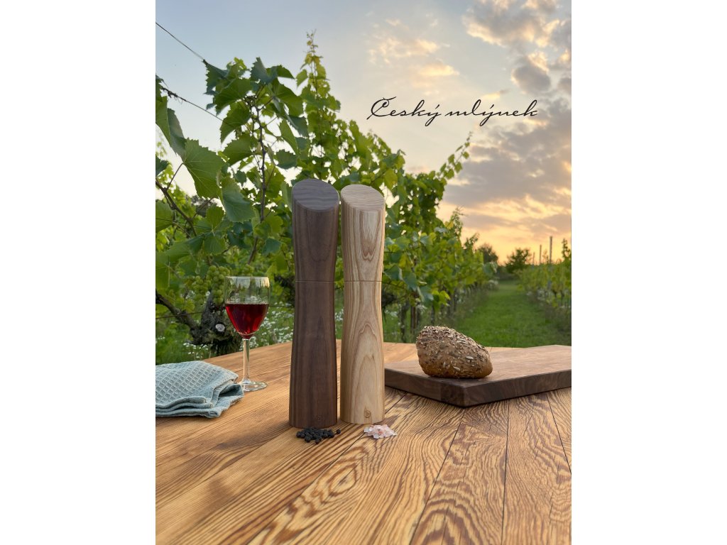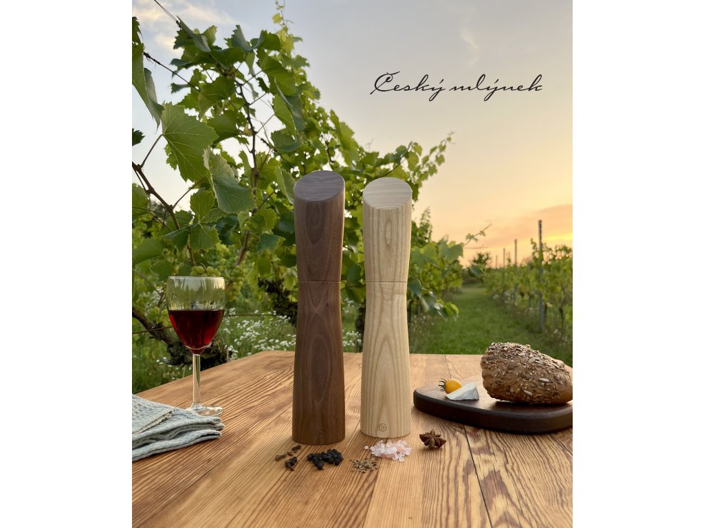 Dřevěný mlýnek na sůl, pepř a jiná koření Memories – 30 cm ruční výroba (jasan / ořešák černý)