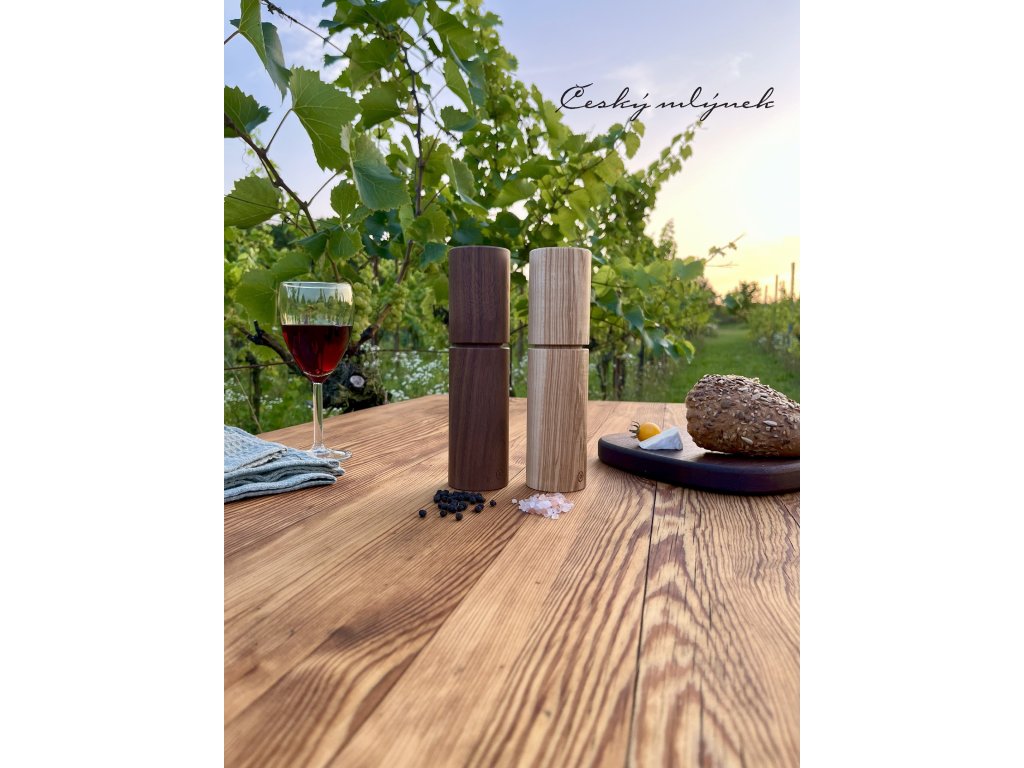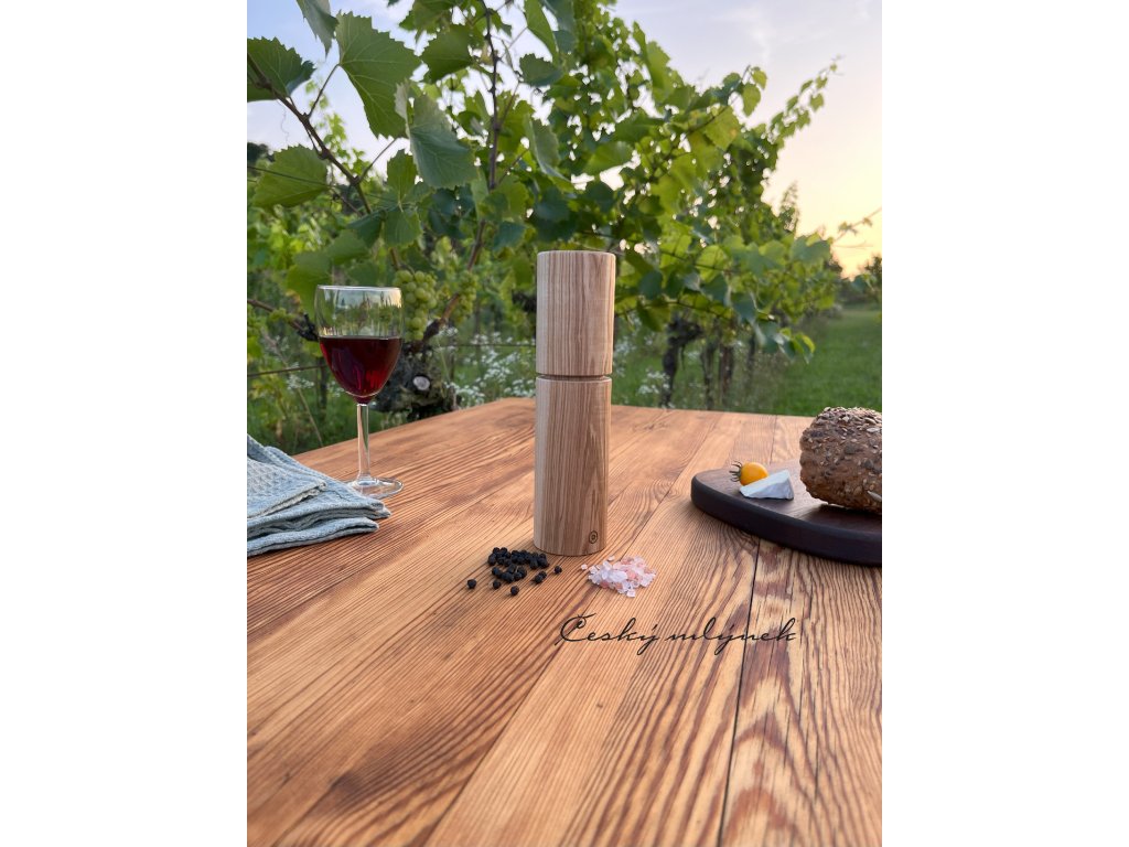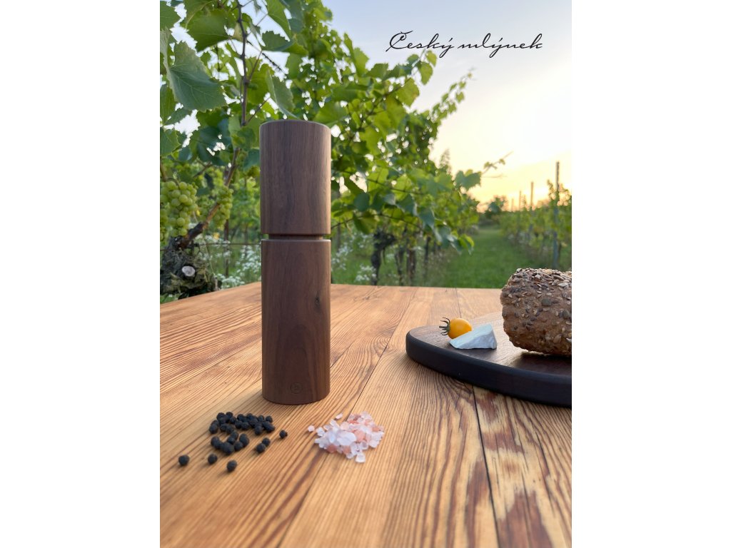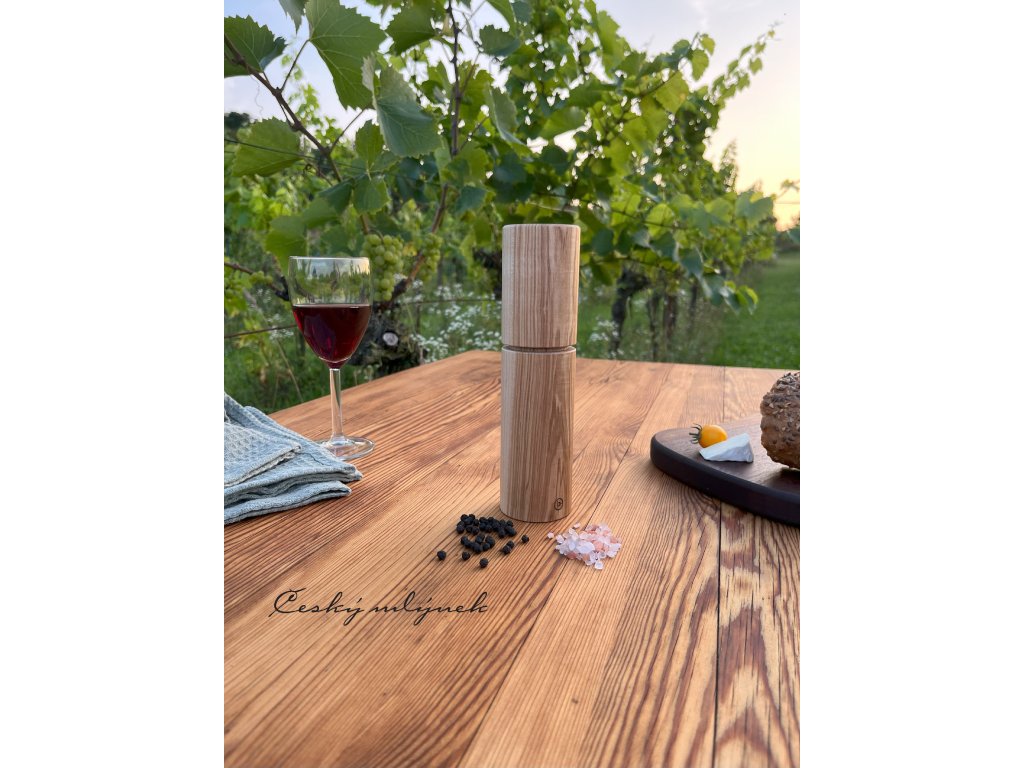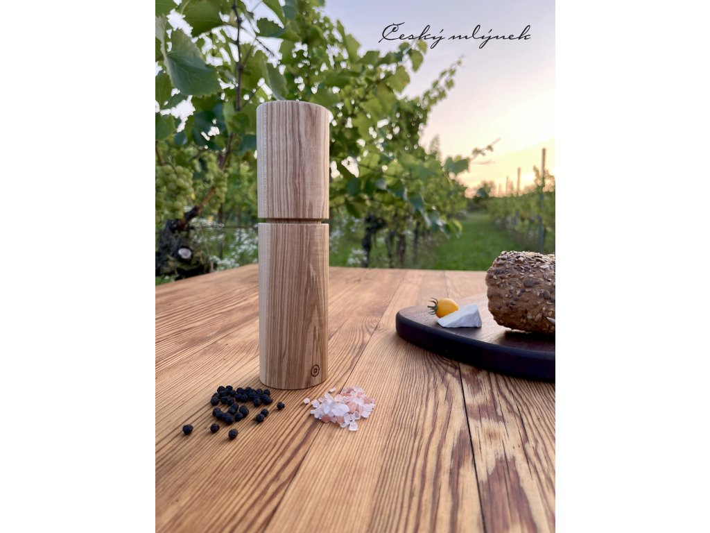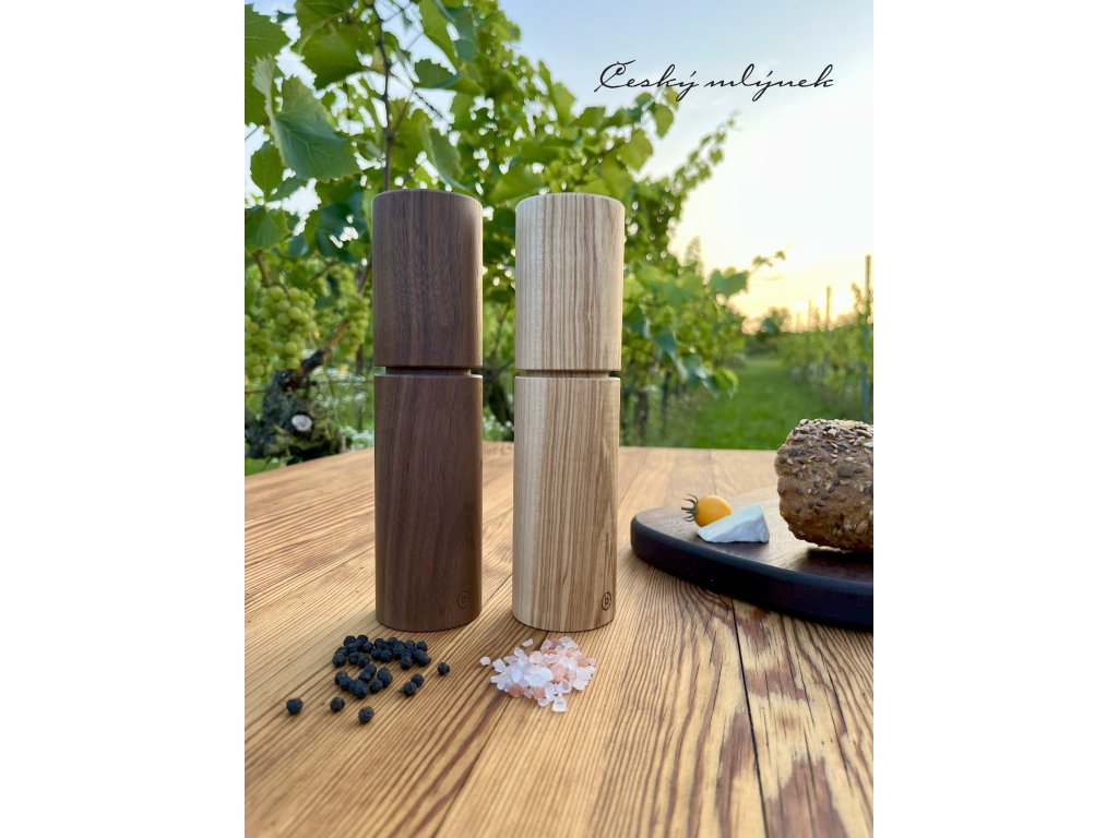 Elegantní dřevěný mlýnek na sůl nebo pepř s keramickým mechanismem a zárukou 25 let. Ruční výroba v České republice z kvalitního jasanu nebo ořešáku černého. Originální design, dlouhá životnost a precizní zpracování.