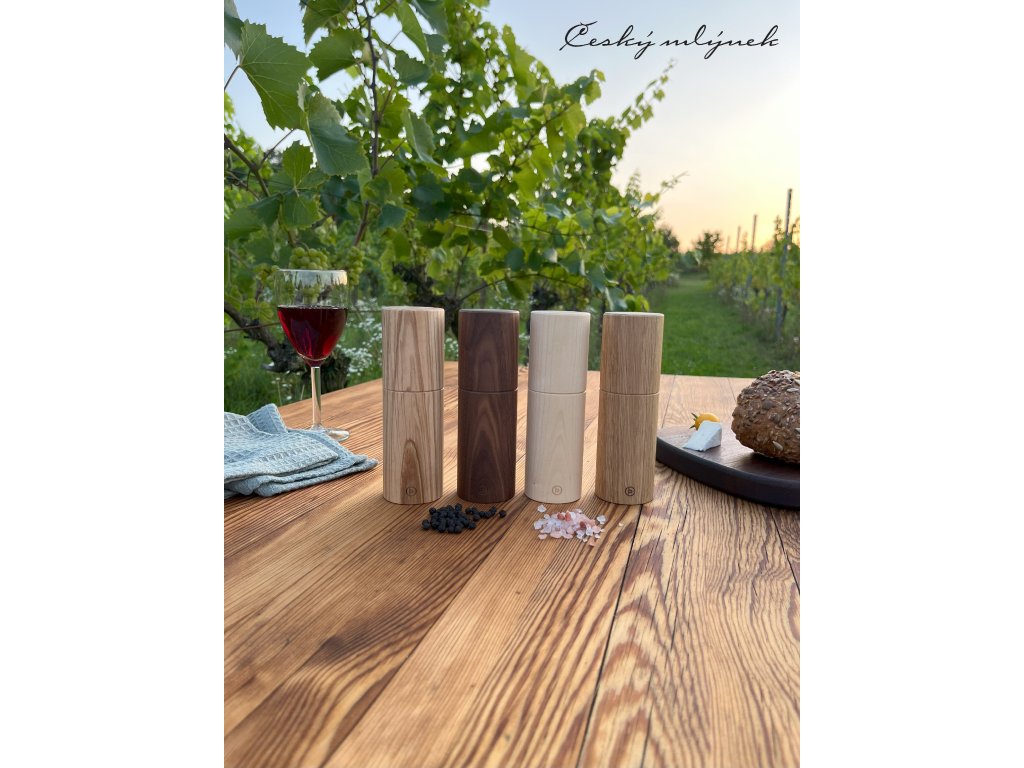 Mlýnek na pepř a sůl dřevěný – výběr ze 4 druhů dřeva 15 cm – válec